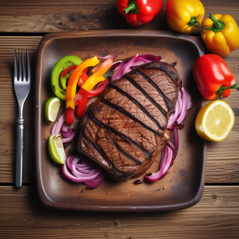 Carne de Res a la Parrilla con Cebolla Morada y Pimientos
