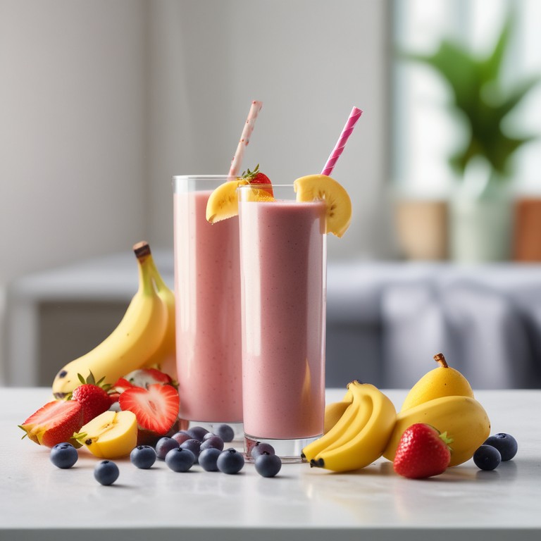 Este batido de frutas tropical es una deliciosa y saludable opción para el desayuno o un refrigerio. Combina plátano, fresas y arándanos con leche para un sabor cremoso y refrescante. Perfecto para cualquier momento del día.