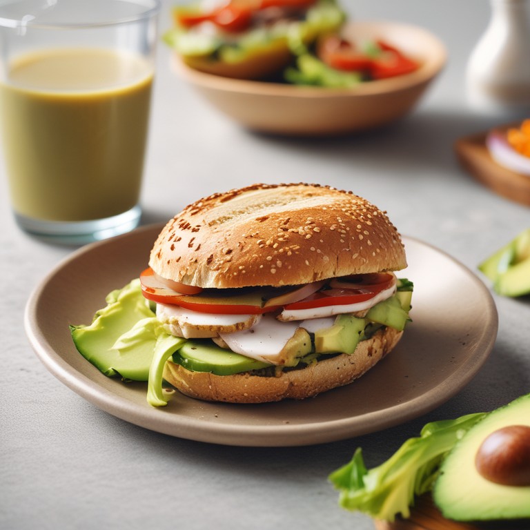 Sándwich Integral de Palta y Pollo con Jugo de Plátano