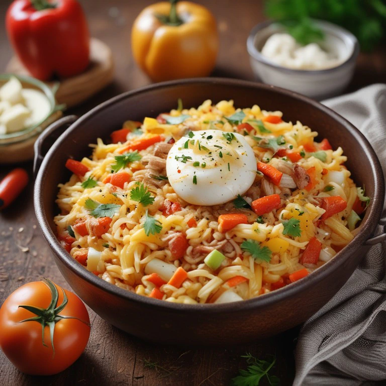 Este delicioso plato combina arroz con papas y una variedad de verduras, todo gratinado con mozzarella. Es una opción perfecta para una comida reconfortante y nutritiva.