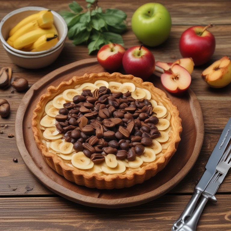 Una deliciosa tarta que combina el sabor dulce del plátano y la manzana con el crujiente de los chips de chocolate, perfecta para un postre o merienda.