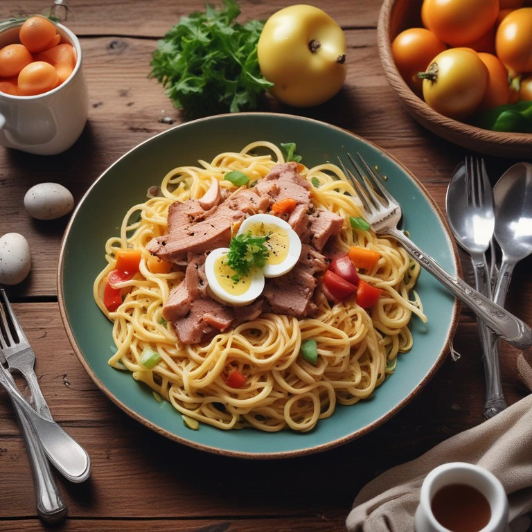 Una receta deliciosa y nutritiva que combina espaguetis con atún ahumado y una variedad de verduras, perfecta para una comida completa y satisfactoria.