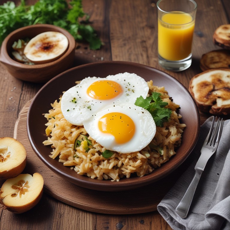 Este plato combina la suavidad del arroz con el sabor dulce de los plátanos y la riqueza de los huevos, creando una comida reconfortante y deliciosa.