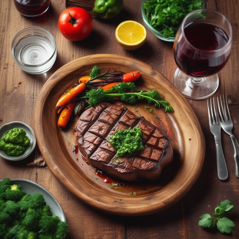 Um delicioso filé de alcatra grelhado, marinado com temperos aromáticos e servido com um vibrante molho chimichurri, perfeito para um jantar especial.