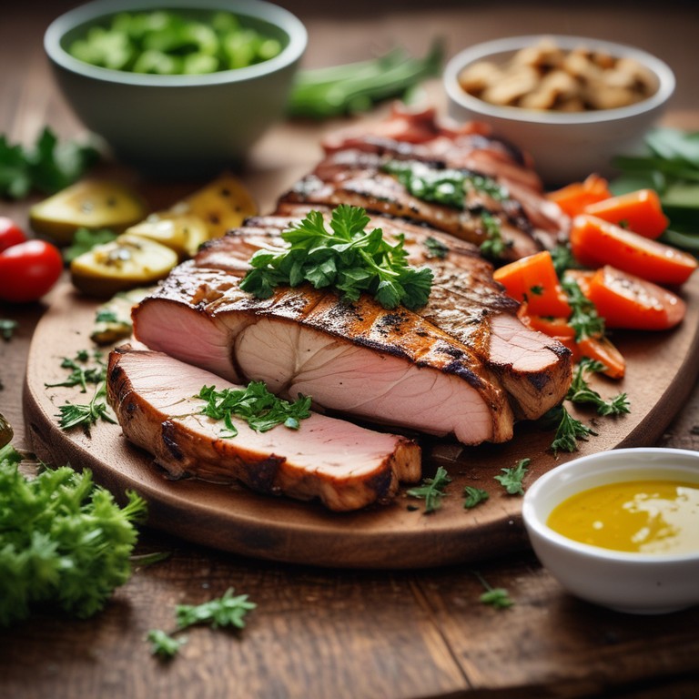 Este delicioso lomo de cinta de cerdo a la parrilla es jugoso y tierno, complementado con una fresca y aromática salsa de chimichurri que realza su sabor. Perfecto para una parrillada o una cena especial.