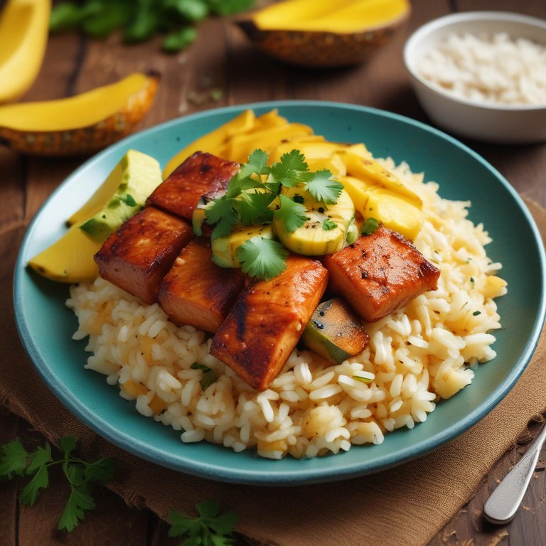 Un delicioso plato que combina la suavidad del arroz con el sabor del pescado, la dulzura del plátano maduro y la frescura de la piña. Perfecto para una comida reconfortante y tropical.