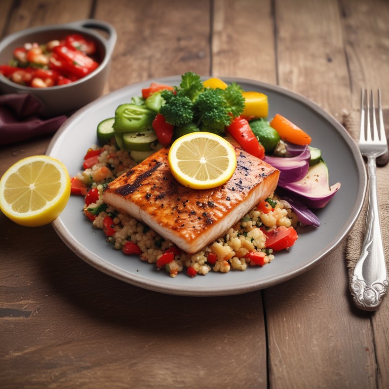 Quinua con Salmón a la Parrilla y Verduras Asadas