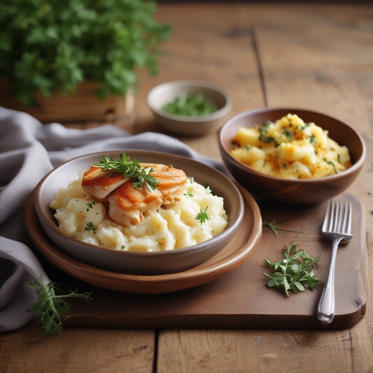 Un plato reconfortante que combina un suave puré de papa con pollo sudado lleno de sabor, ideal para una comida familiar.