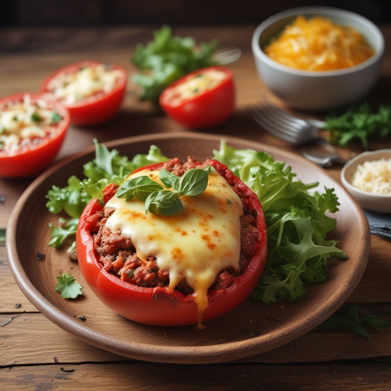 Une délicieuse recette de tomates farcies, parfaites pour un repas convivial. Ces tomates sont remplies d'un mélange savoureux de viande hachée, de riz et d'herbes, le tout gratiné au four.
