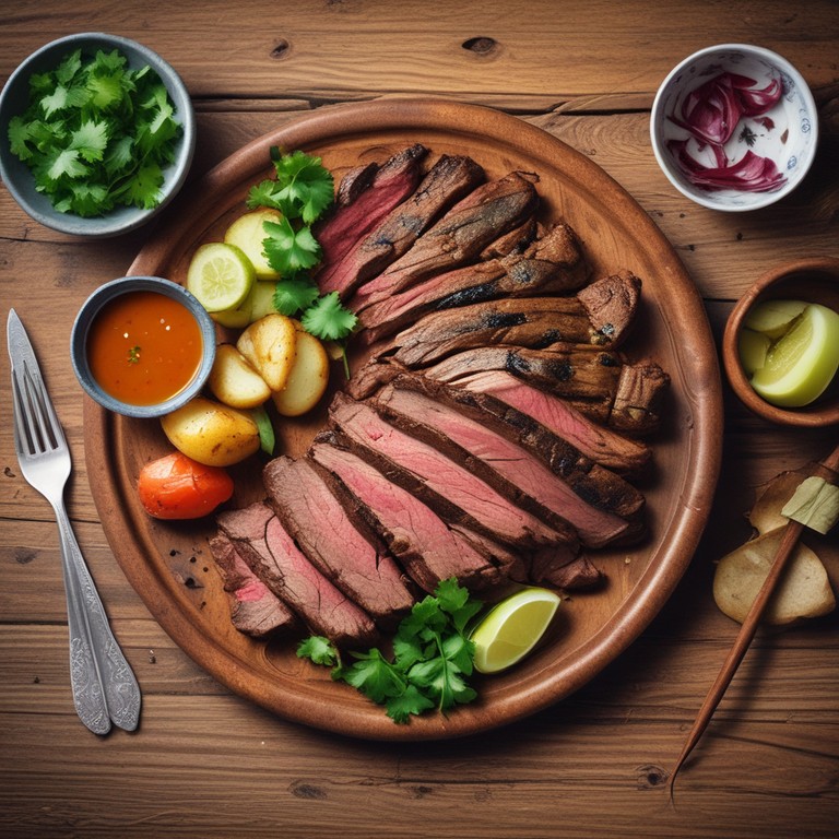 Una deliciosa receta de carne asada marinada y cocinada a la parrilla, acompañada de papas cocidas tiernas. Perfecta para una comida familiar o una reunión con amigos.