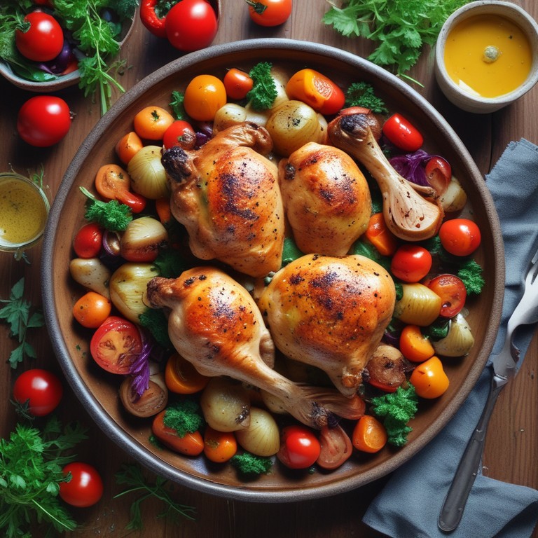 Este delicioso pollo a la mostaza se combina con una variedad de verduras asadas, creando un plato lleno de sabor y color. Perfecto para una cena familiar o una ocasión especial.