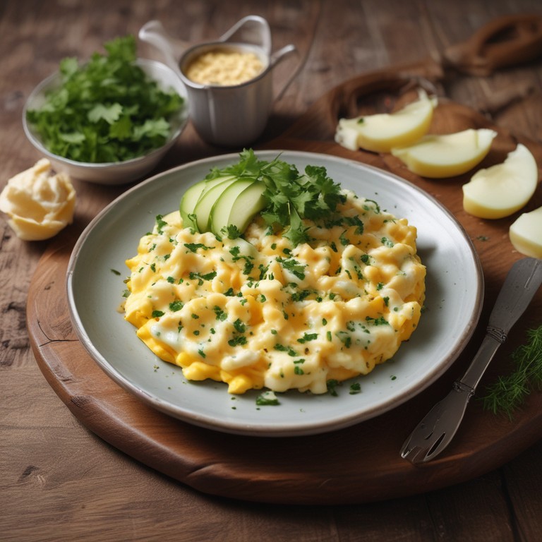 Huevos Revueltos con Queso, Pepino y Cebolla