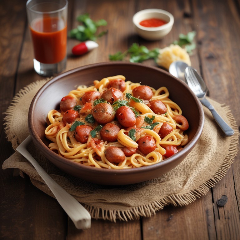 Una receta sencilla y deliciosa de pasta con salchichas y salsa de tomate, perfecta para una comida rápida y satisfactoria.