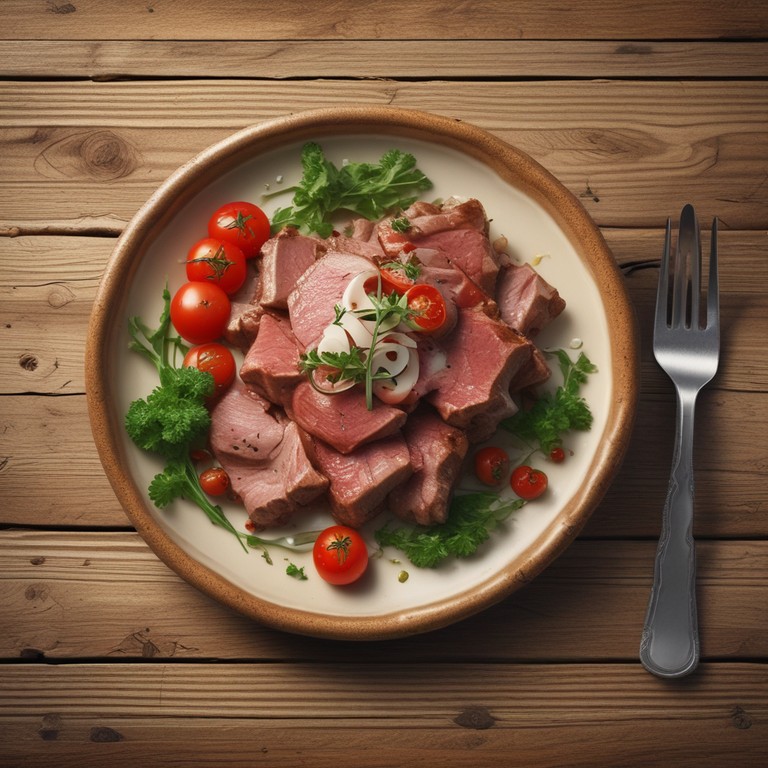 Una deliciosa receta de carne cocinada en una salsa cremosa de leche, acompañada de cebolla y tomate, perfecta para una comida reconfortante.