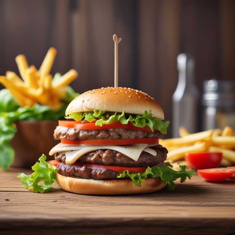 Esta hamburguesa americana clásica es perfecta para una comida reconfortante. Con carne jugosa, queso derretido y papas fritas crujientes, es un plato que encanta a todos.