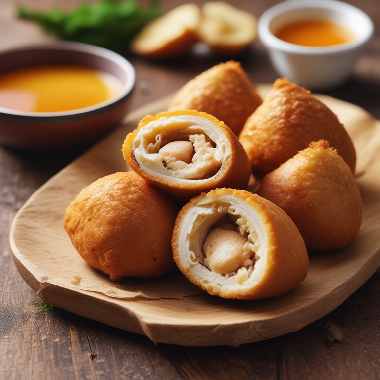 Uma deliciosa coxinha de frango recheada com queijo suíço, perfeita para festas e lanches.