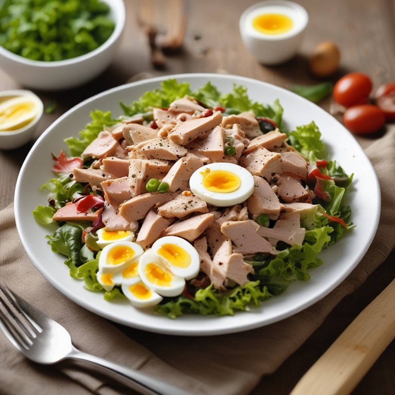 Esta ensalada de atún es una opción rápida y nutritiva, perfecta para un almuerzo ligero o una cena. Combina el sabor del atún con la cremosidad del huevo y la frescura de las verduras enlatadas.