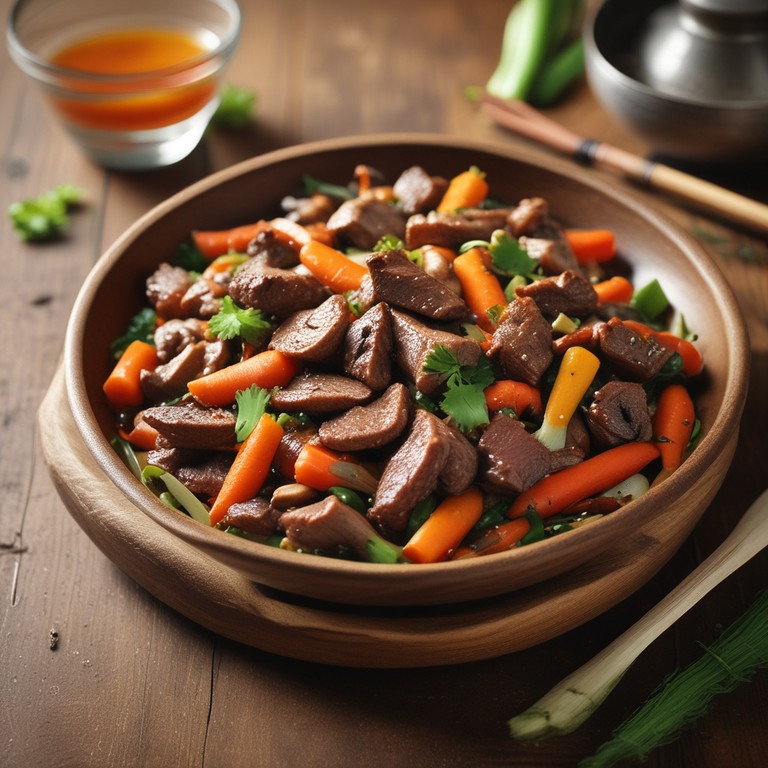 Un delicioso salteado de carne con champiñones y verduras, perfecto para una comida rápida y nutritiva.