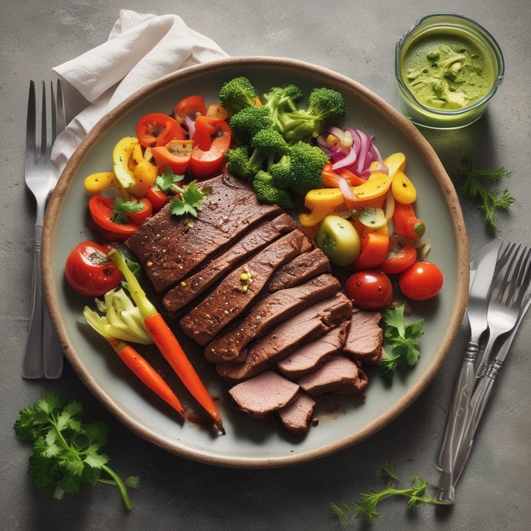 Una deliciosa receta de carne asada acompañada de verduras al vapor, perfecta para una comida saludable y nutritiva.