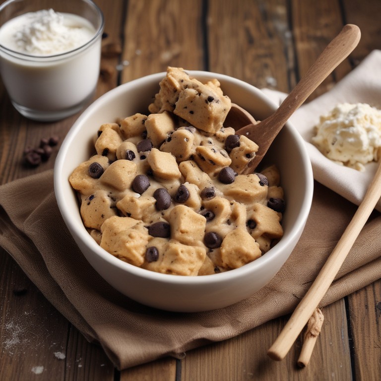 Esta receta de masa de galleta comestible es perfecta para disfrutar sin hornear. Puedes elegir entre usar leche o clara de huevo pasteurizada para obtener la textura que prefieras. ¡Disfruta de un delicioso sabor a vainilla y chispas de chocolate!