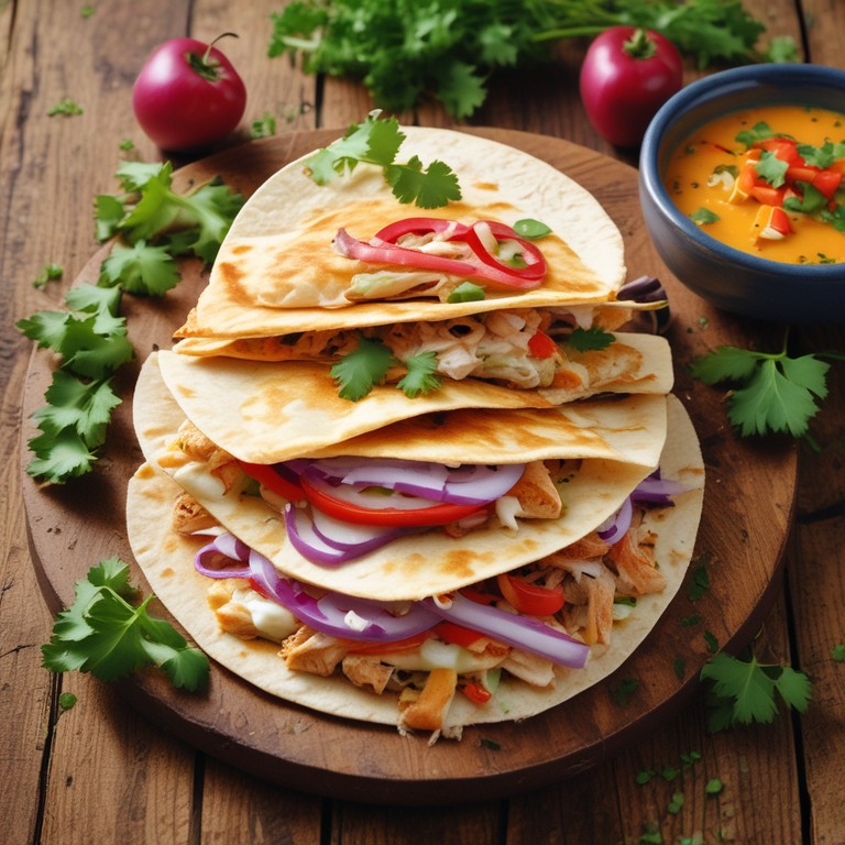 Esta receta de quesadilla es perfecta para disfrutar de un delicioso y suculento relleno de pollo y verduras, todo envuelto en una tortilla dorada y crujiente.