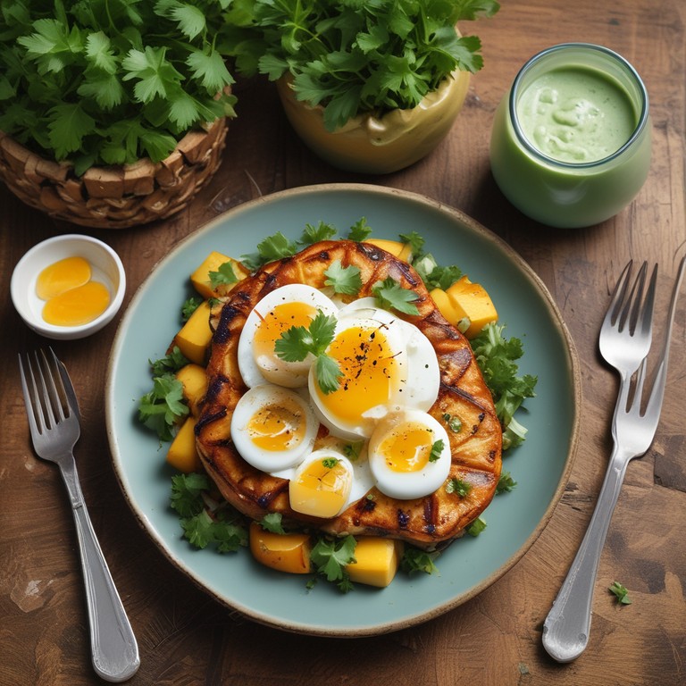 Un plato delicioso que combina la dulzura de la piña asada con la riqueza de los huevos, ideal para un desayuno o brunch especial.