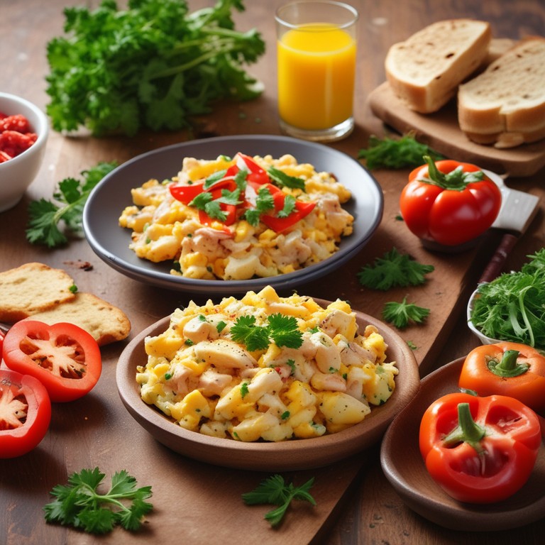 Un plato delicioso y nutritivo que combina huevos revueltos con atún y se sirve sobre tostadas crujientes. Perfecto para un desayuno o brunch.