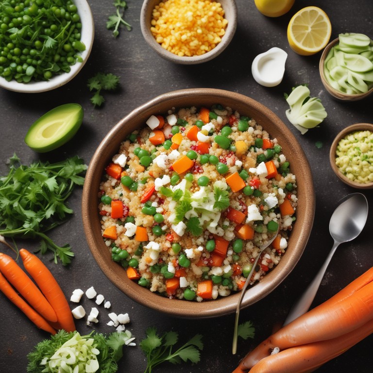 Esta ensalada fresca de quinua es una opción nutritiva y deliciosa, perfecta para un almuerzo ligero o como acompañamiento. Combina la quinua rica en proteínas con verduras frescas y queso, creando un plato lleno de sabor y color.