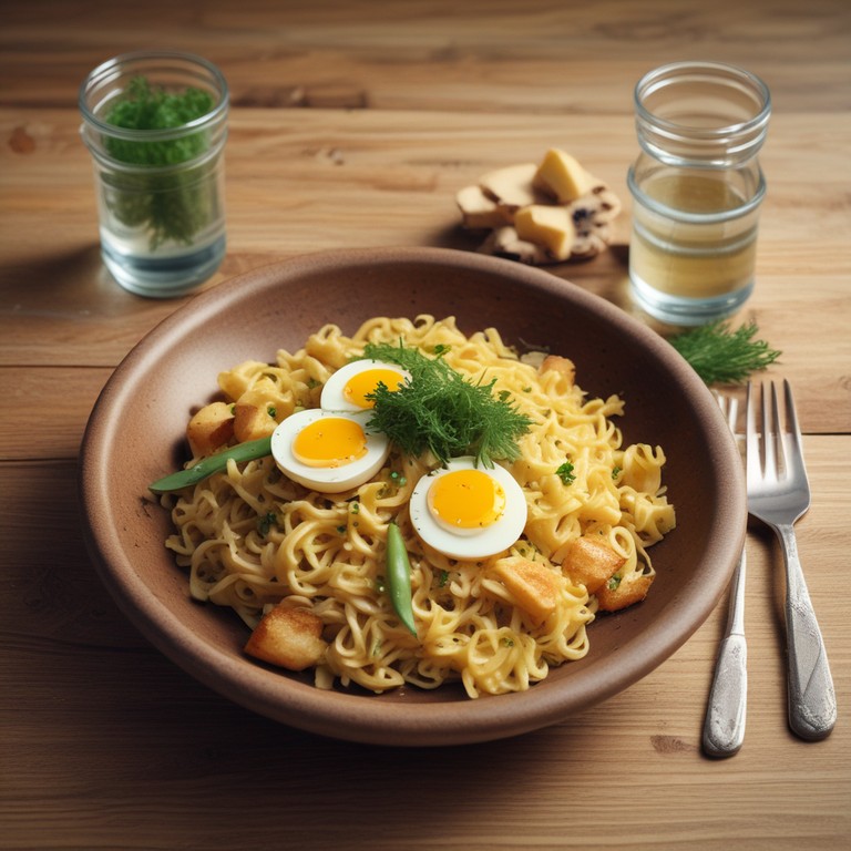 Una receta nutritiva y deliciosa que combina tallarines de avena con papas doradas y huevos revueltos, perfecta para un almuerzo o cena reconfortante.