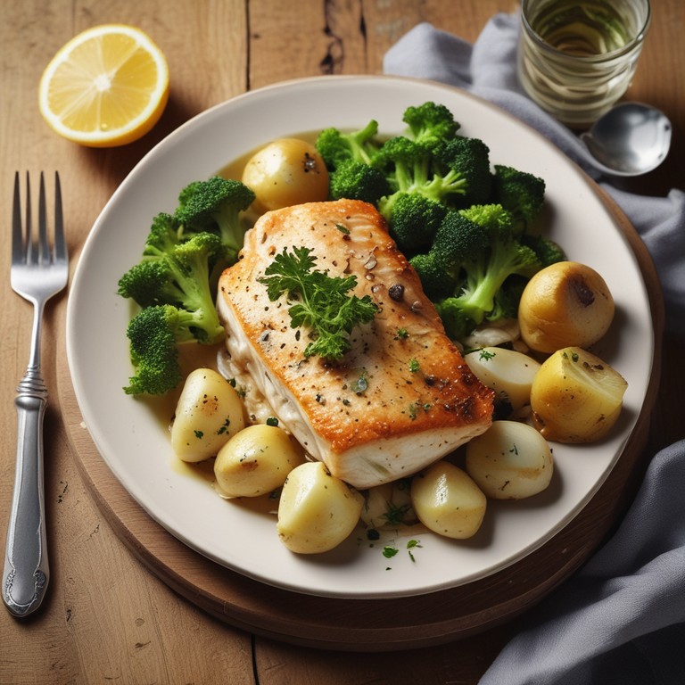 1 RACION Filete de Merluza al Horno con Patatas, Cebolla y Brócoli