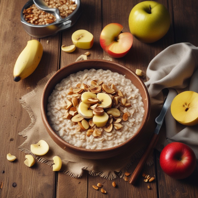 Una deliciosa y nutritiva receta de avena que combina la dulzura de la manzana y el plátano, perfecta para un desayuno saludable.