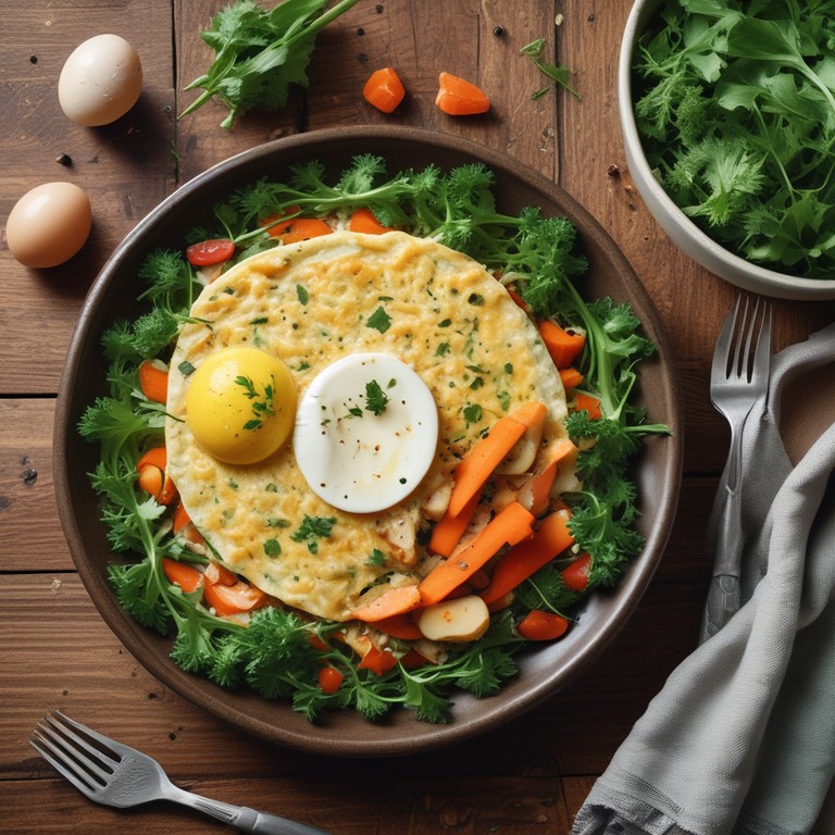 Una deliciosa tortilla de verduras que combina zanahorias, calabacín y avena, perfecta para un desayuno saludable o una cena ligera.