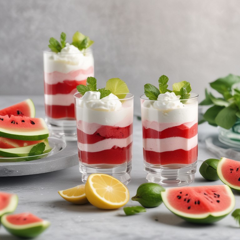 Un postre refrescante y ligero que combina la dulzura de la sandía con la cremosidad de la crema de leche y un toque cítrico de limón. Perfecto para los días calurosos.