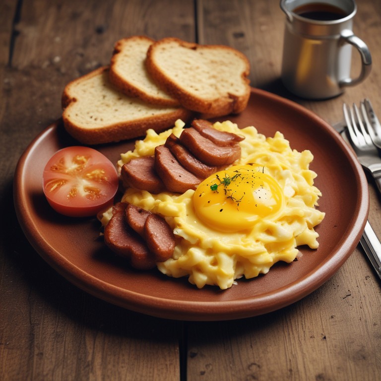 Un plato delicioso y fácil de preparar, ideal para un desayuno sustancioso o un almuerzo rápido. Los huevos revueltos se combinan perfectamente con la salchicha y la cebolla, creando una mezcla sabrosa y reconfortante.
