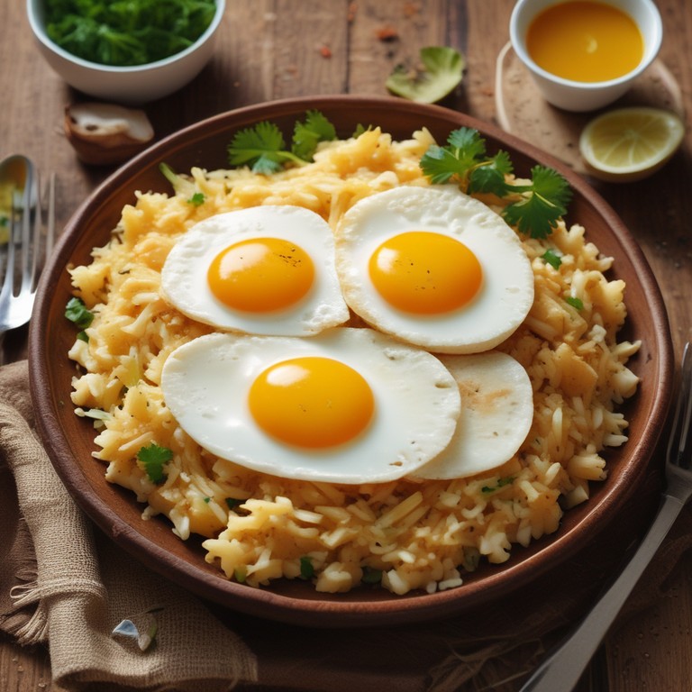 Un plato delicioso y reconfortante que combina arroz esponjoso, papas doradas y huevos, ideal para cualquier comida del día.