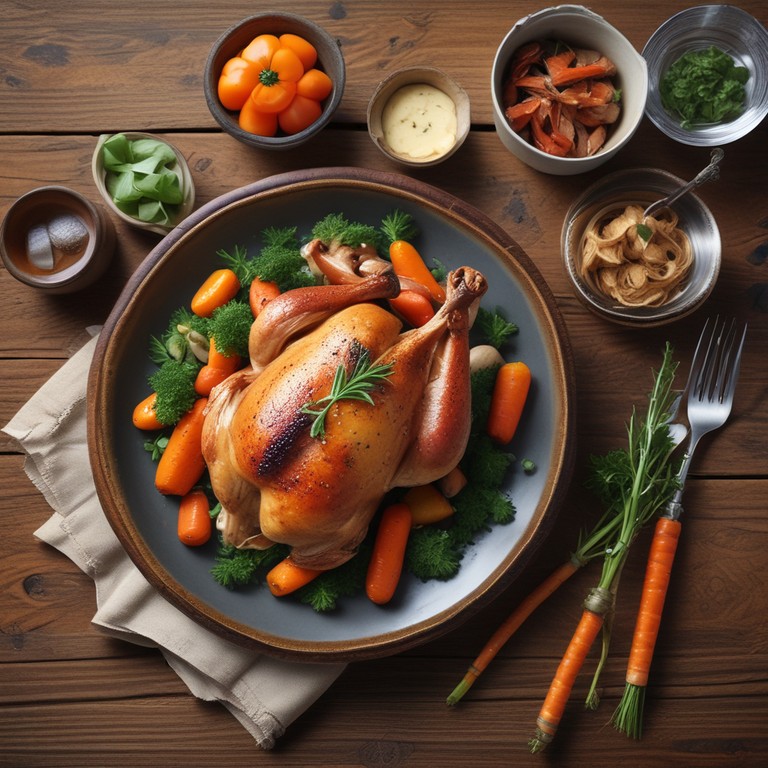 Un delicioso plato de pollo asado acompañado de zanahorias glaseadas, perfecto para una cena familiar.