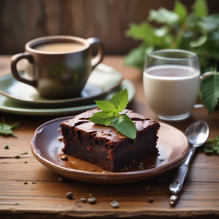 Um delicioso brownie cremoso, coberto com ganache de chocolate e finalizado com um toque especial de erva mate, perfeito para um lanche ou sobremesa.