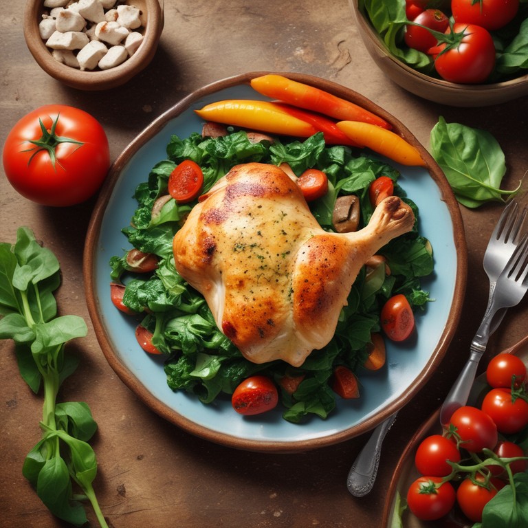 Un delicioso plato que combina la suavidad del pollo con la frescura de las espinacas y el sabor de las papas y jitomates, ideal para una comida nutritiva y sabrosa.