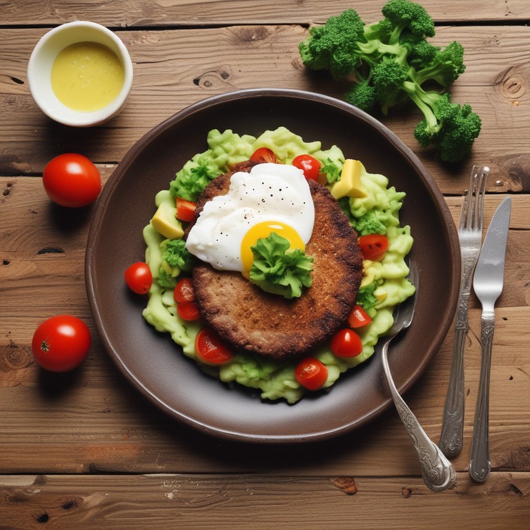 Una deliciosa milanesa de carne acompañada de un suave puré de coliflor, tomate y palta, perfecta para una comida completa y nutritiva sin ensalada.