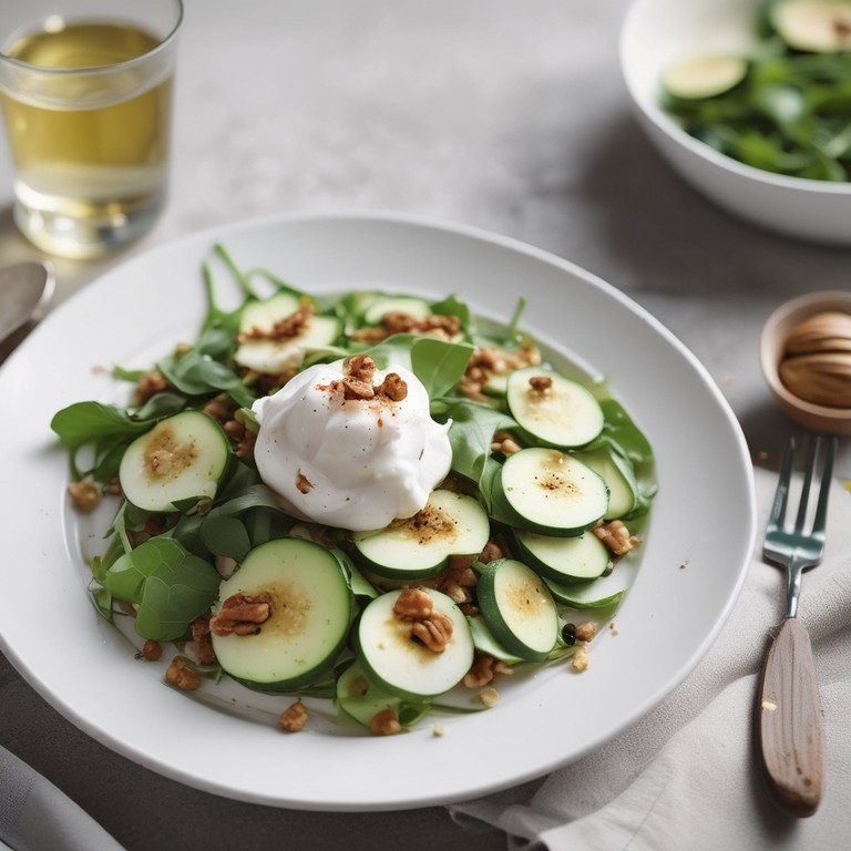 Una ensalada fresca y ligera que combina la suavidad de la burrata con la frescura del calabacín, ideal para los días calurosos.