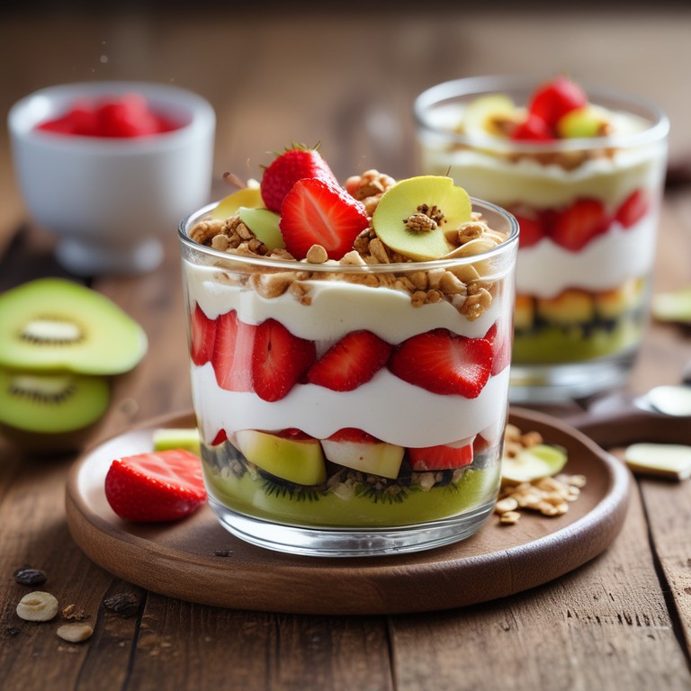 Un postre sencillo y delicioso que combina yogur cremoso con frutas frescas, ideal para principiantes y perfecto para servir en vasos.