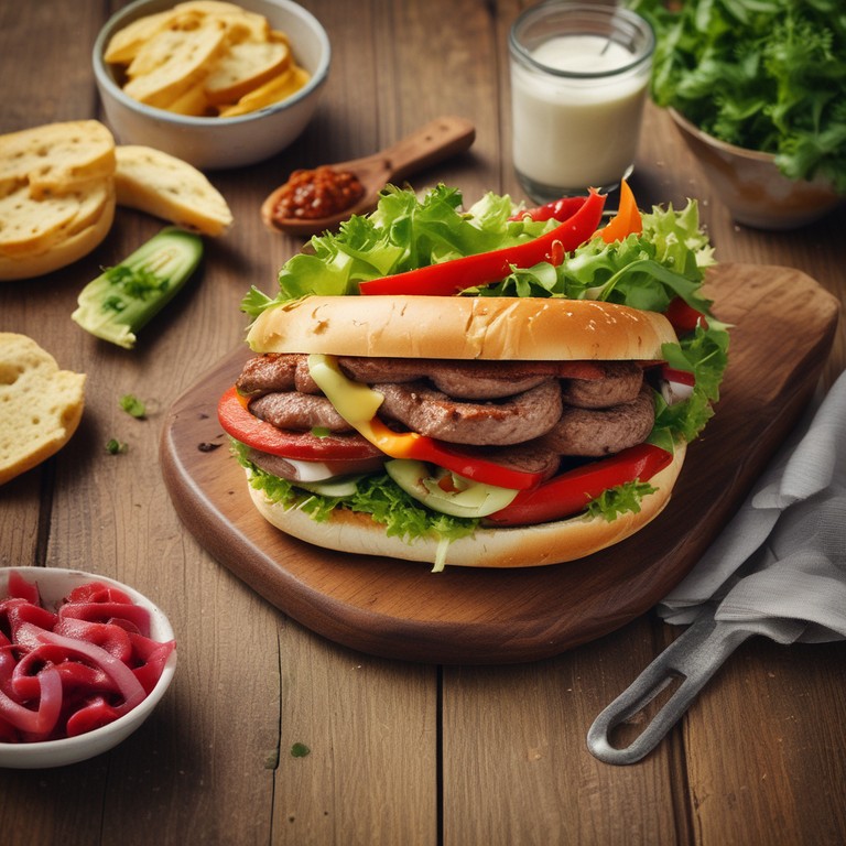Un delicioso sándwich de salchicha argentina, ideal para disfrutar en cualquier ocasión. Con un pan crujiente y una mezcla de verduras salteadas, es una opción sabrosa y fácil de preparar.