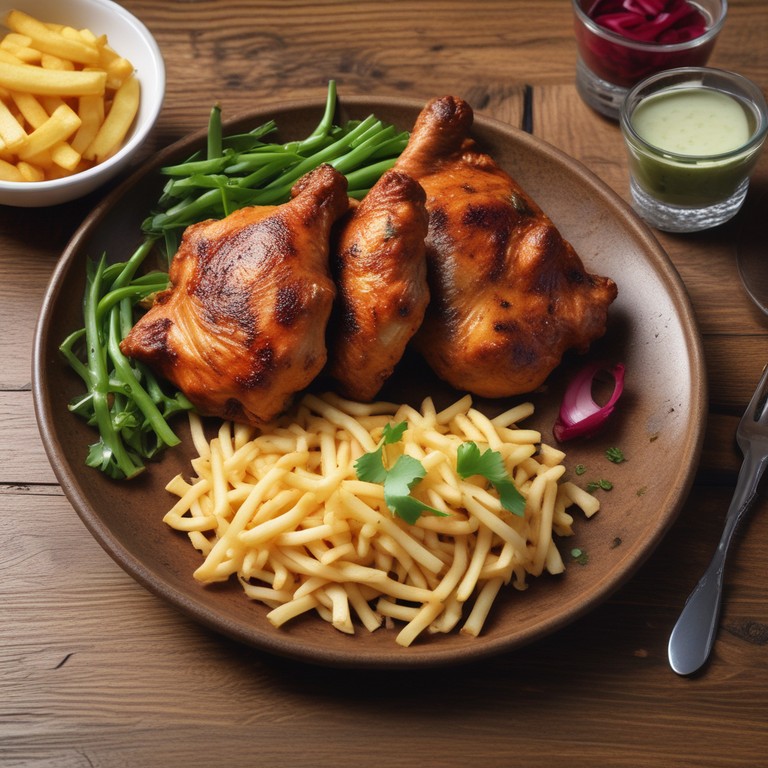 Una receta sencilla y deliciosa de muslos de pollo especiados acompañados de papas a la francesa, ideal para un almuerzo rápido y sabroso.