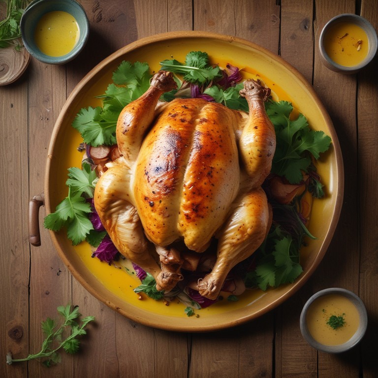 Este delicioso pollo asado se combina con una cremosa salsa de curry, creando un plato lleno de sabor y aromas exóticos. Perfecto para una cena especial o una reunión familiar.