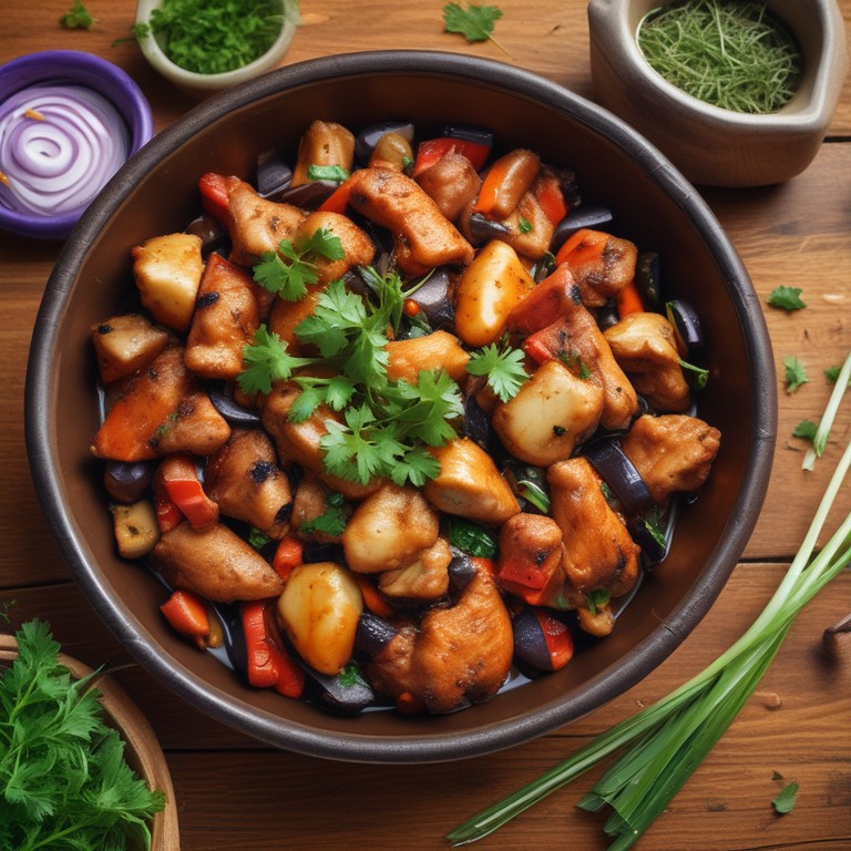 Pollo Salteado con Berenjena, Cebolla y Zanahoria