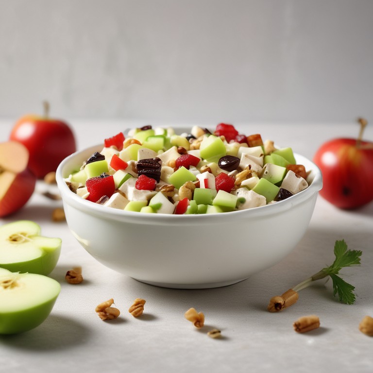 Esta ensalada de apio y manzana es una opción refrescante y saludable, perfecta para acompañar cualquier comida o disfrutar como un plato ligero. La combinación de la manzana dulce y crujiente con el apio fresco, las nueces y las pasas crea una textura y sabor únicos. El aderezo de yogur con miel y limón añade un toque cremoso y ligeramente ácido que complementa perfectamente los ingredientes.