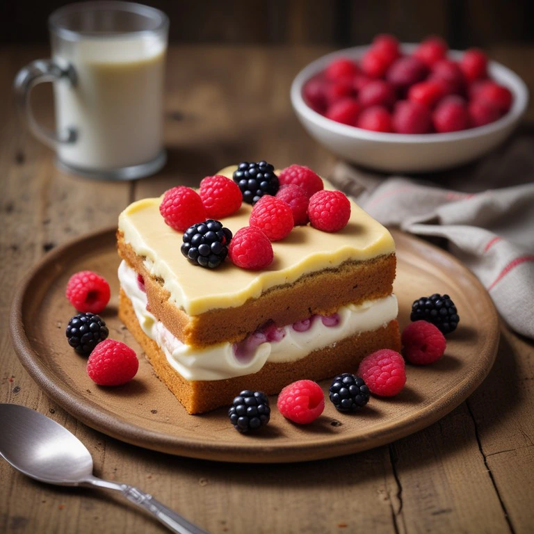 Queque de Plátano con Crema de Fresa y Frutos Rojos