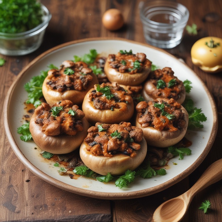 Deliciosos champiñones rellenos de carne molida, perfectos como aperitivo o plato principal, con un toque de queso derretido y especias.