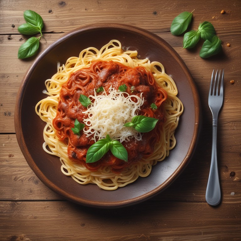 Una deliciosa receta de espaguetis con una salsa de tomate casera y queso rallado, perfecta para una comida reconfortante.