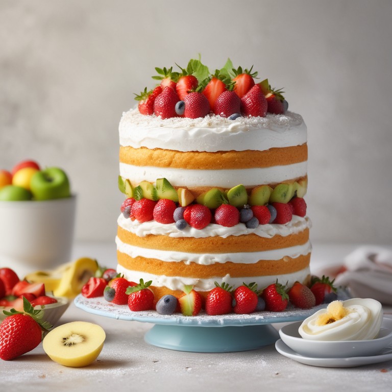 Esta torta esponjosa de vainilla es perfecta para cualquier celebración. Con un delicioso relleno de mermelada de frutas y decorada con frutas frescas, es un postre que encantará a todos.